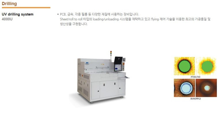 Co2 드릴링은 현재 FC-BGA 기판에 사용되지만 UV 드릴링은 FC-BGA 기판은 물론이고 TSV, HBM, 실리콘 인터포저 등 사용할 여지가 많다.