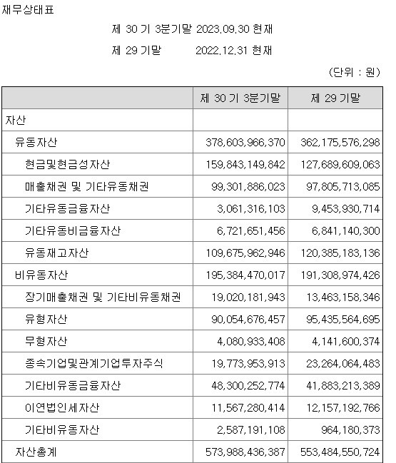 부채비율 역시 2023년 3분기 기준으로 7.6% 로 아주 낮다.